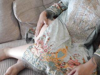 Britische Chantelle Fox positioniert sich für geficktes Einführen und Befeuchtung ihrer Pussy